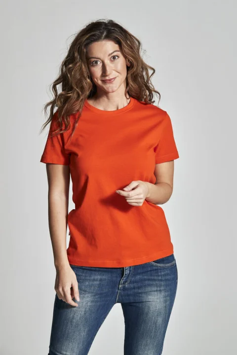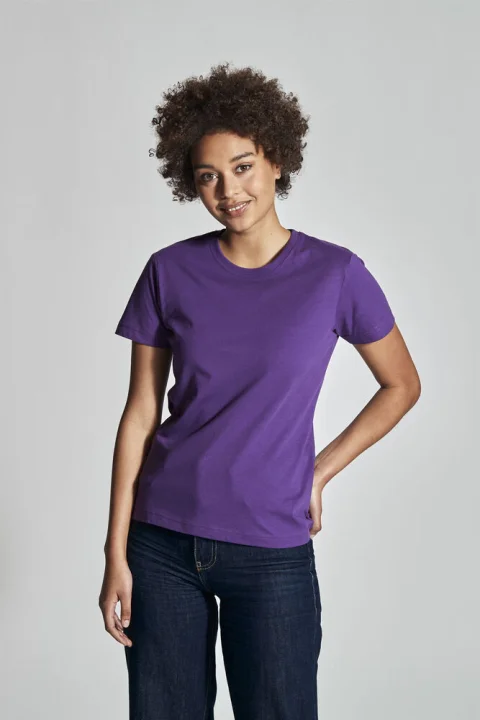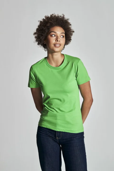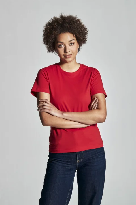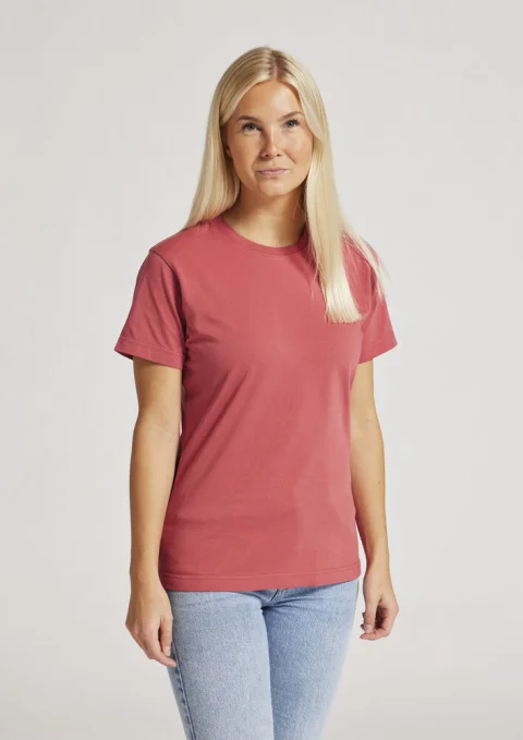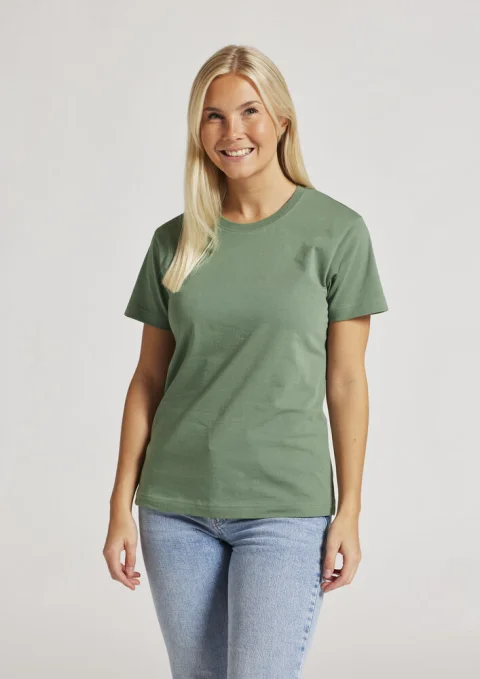 Pyöreä kaula-aukkoinen T-paita naisten mallina. Kavennettu malli, jossa pääntiellä siisti ribbineulos. Valmistettu hienolaatuisesta Reilun kaupan luomupuuvillasta.