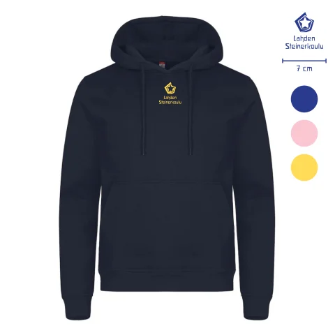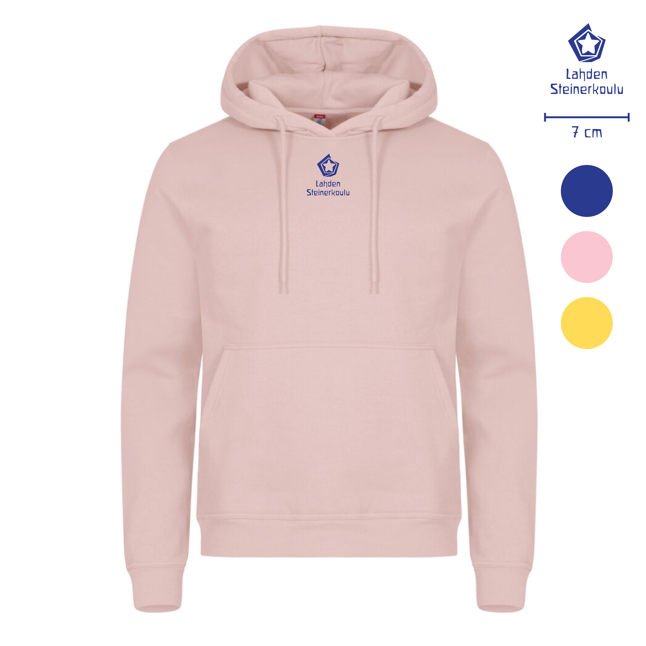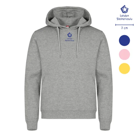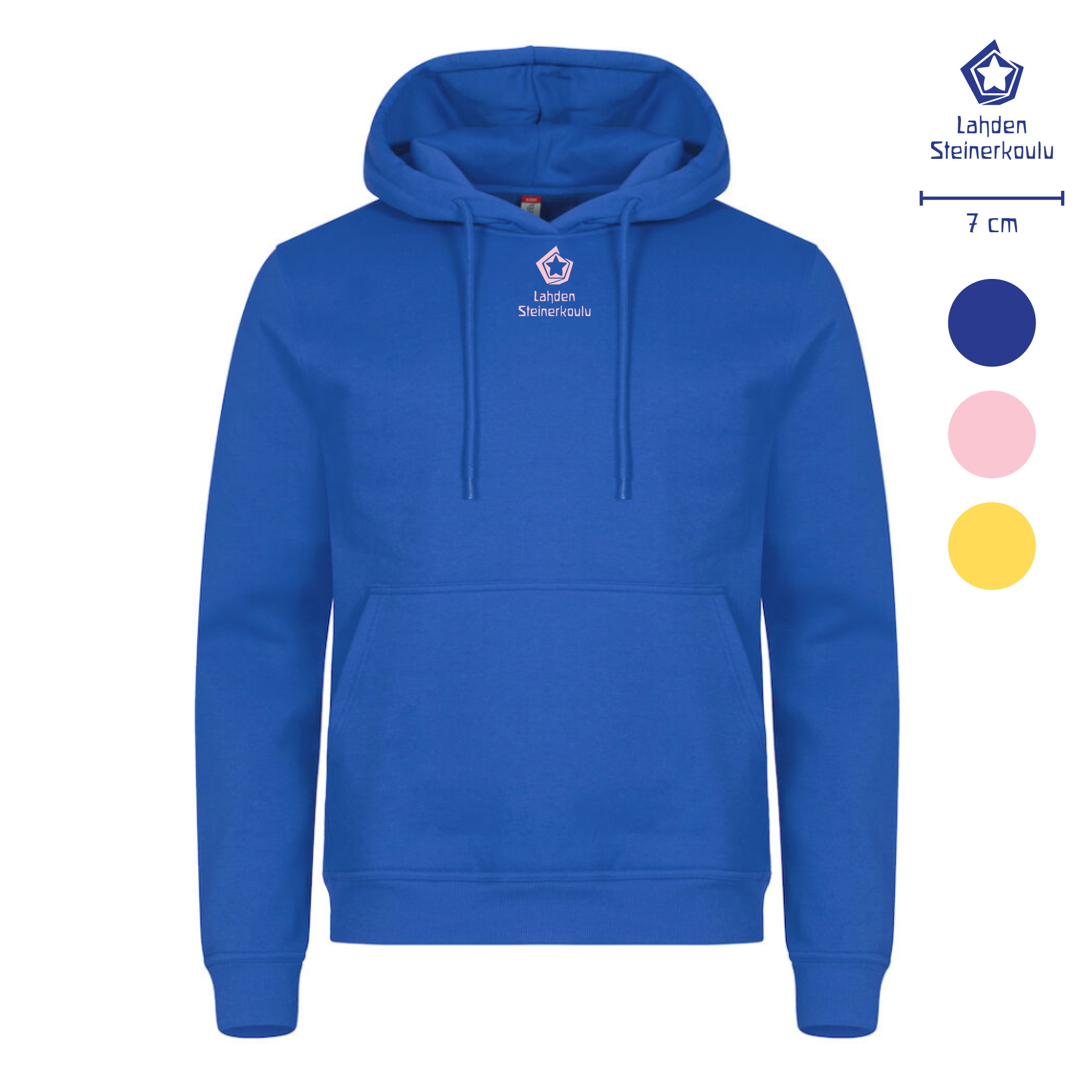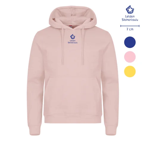 Unisex-mallinen huppari puuvillan ja kierrätetyn polyesterin sekoituksesta. Hupussa kiristysnyöri, edessä iso tasku. Joustava resori helmassa ja hihansuissa.