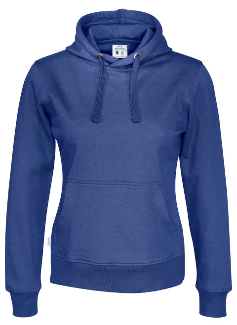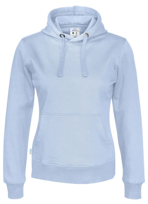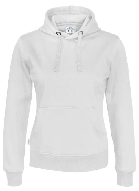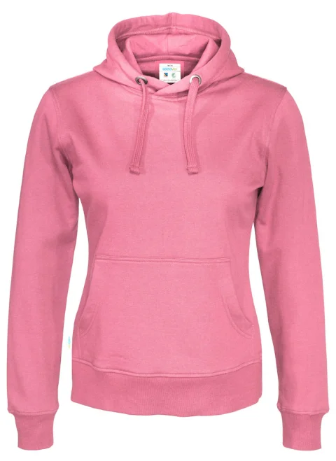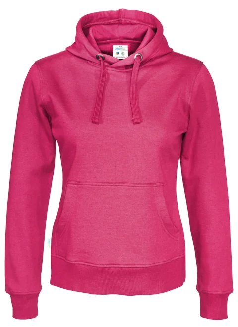 Hupullinen naisten collegehuppari, jossa harjattu pehmeä sisäpuoli. Saatavissa naisten ja miesten malleina. Kavennettu hupullinen malli, jossa hupussa kaksinkertainen kangas. Etutasku sekä 2x2-ribbineulos hihansuissa ja paidan helmassa.