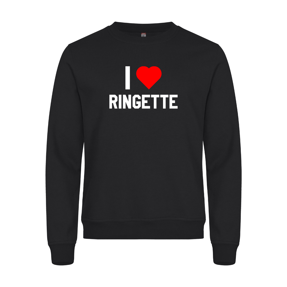 I love Ringette - collegepaita on mukava puuvillainen collari kaikille ringette-faneille ja pelaajille – treenimatkoille, hallille, koululle tai vapaa-aikaan.