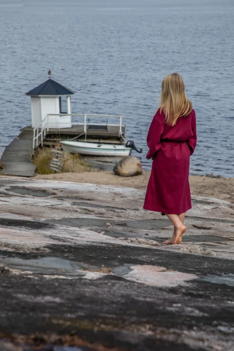 Kosta Linnewäfveri College kylpytakki. Tämä uniikki kylpytakki on valmistettu ihanan pehmestä college materiaalista. Kylpytakki on kevyt ja erittäin mukava päällä. Modernit tehosteet molemmissa taskuissa ja hihansuissa. Huomio! Kun kerran puet kylpytakin päällesi, et halua enää riisua sitä! Oeko-Tex-sertifioitu.