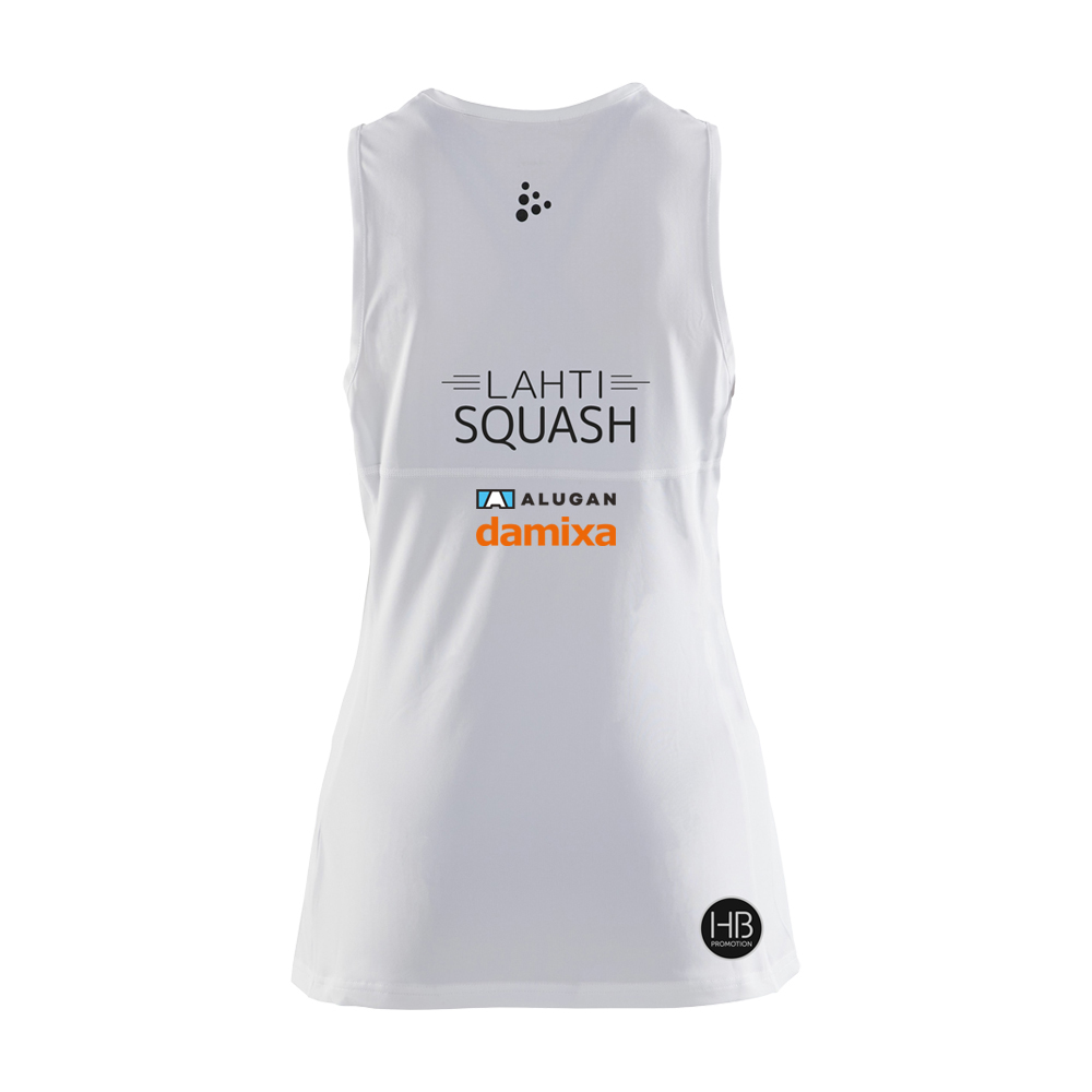 Hihaton treenipaita, joka on valmistettu toiminnallisesta materiaalista. Erinomainen hengittävyys ja kosteudensiirtokyky. Koristeelliset yksityiskohdat ja racerback-selkäosa. Paidassa DAMIXA ja Alugan.