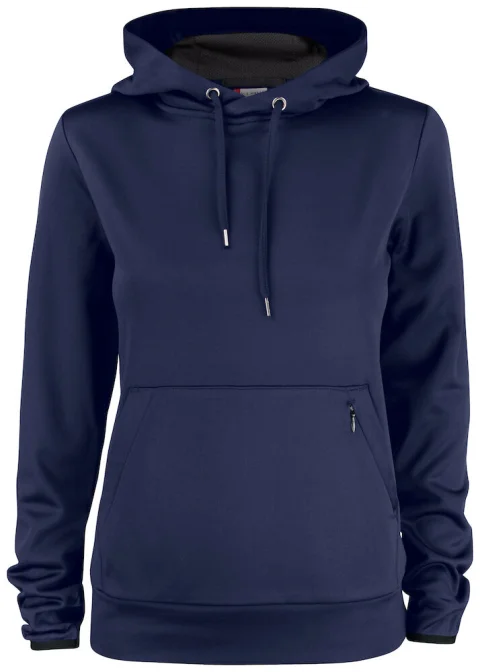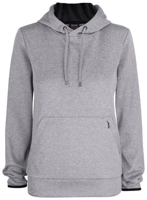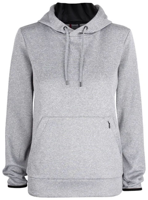 Urheilullinen tekninen huppari, jossa etutasku ja vetoketjullinen piilotasku. Hupussa on verkkovuori ja kiristysnyöri. Hihansuissa ja helmassa resorit.