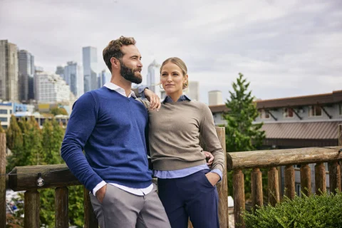 Oakville-neulepusero sopii yhteen monentyylisten vaatteiden kanssa. Neule on pehmeä ja kevyt ja sopii erityisen hyvin paidan päällä käytettäväksi. Sekoitemateriaalin puuvilla tekee neuleesta pehmeän ja nailon tuo sille kestävyyttä. Oakville on saatavana pyöreällä ja V-kaula-aukolla.