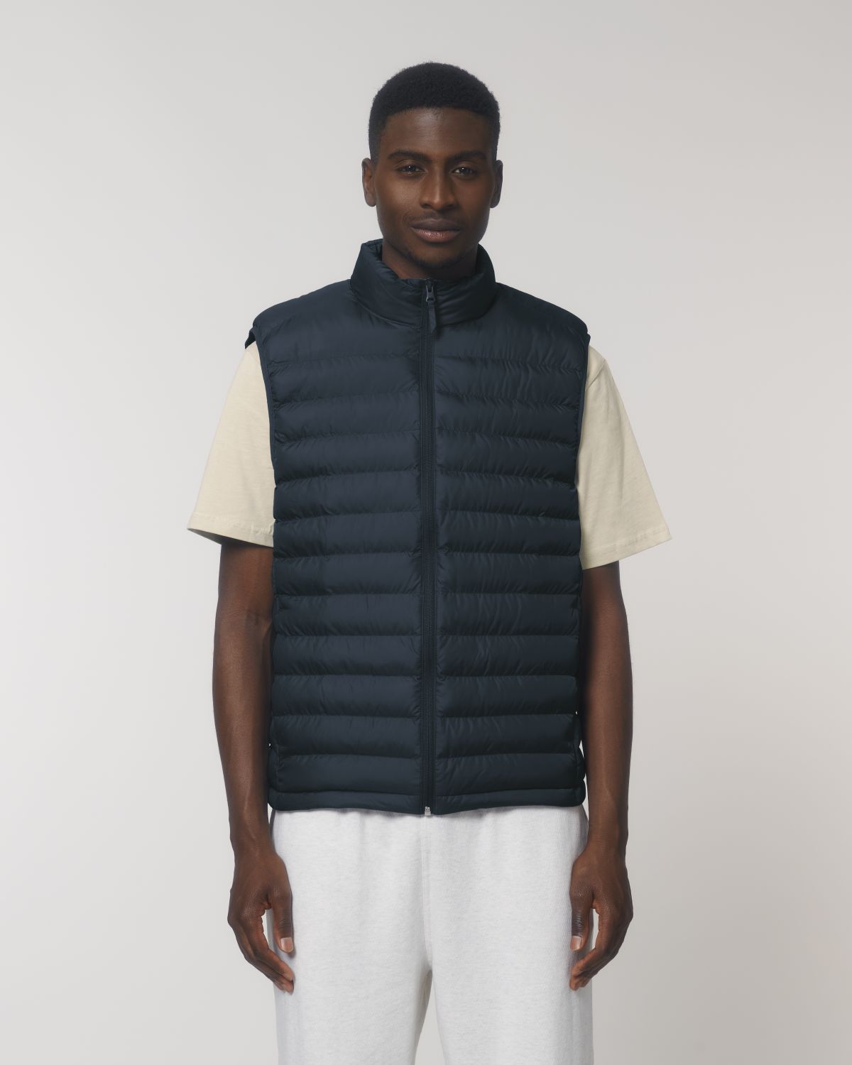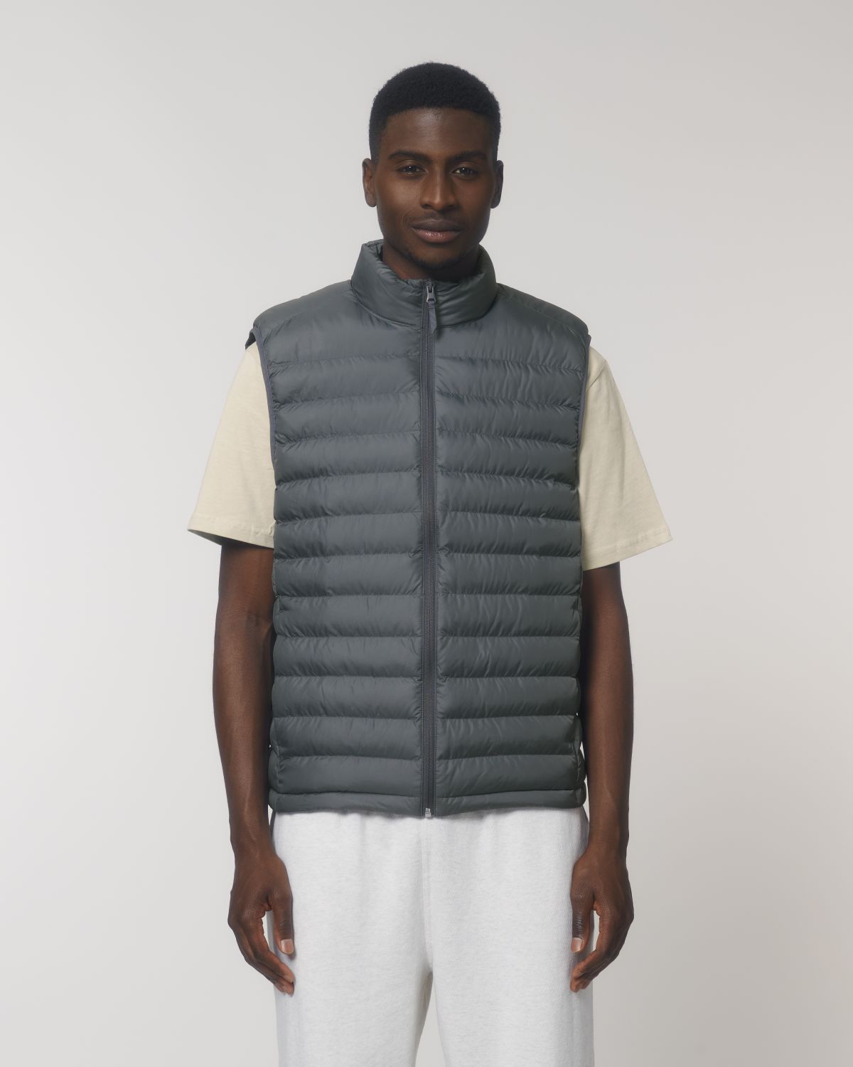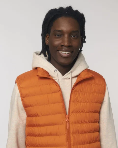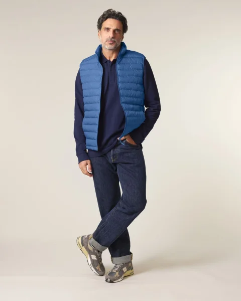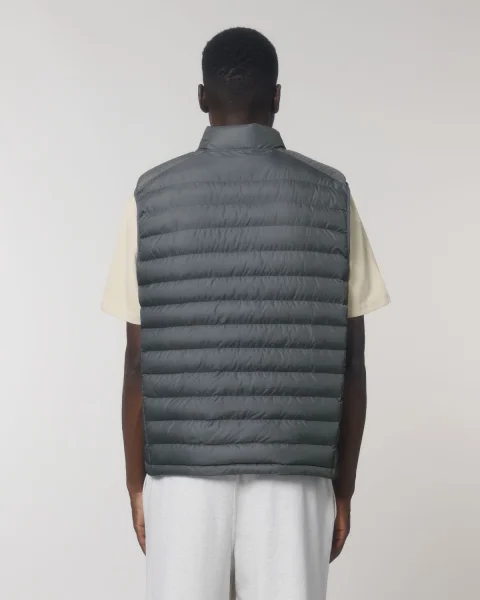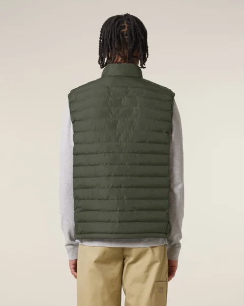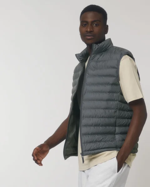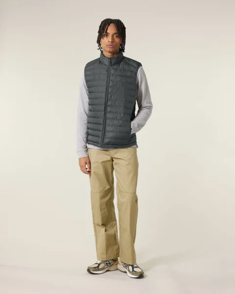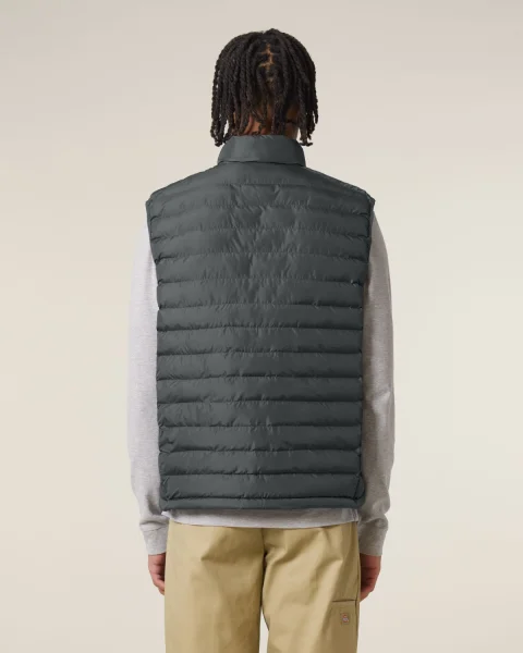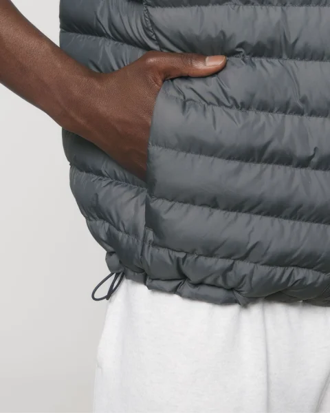 Stanley Climber kevyttoppaliivi. Hihaton, korkea kaulus, käänteinen nailonvetoketju edessä keskellä sekä vetoketjulliset teretaskut, joissa ylimääräinen grosgrain-vetohihna. Elastinen nauhareuna kädentien ympärillä. Sivupaneelit paremman istuvuuden takaamiseksi. Sisäsaumat nauhareunuksella sekä helma, jossa säädettävä muovinen stopperi ja joustava kiristysnauha.