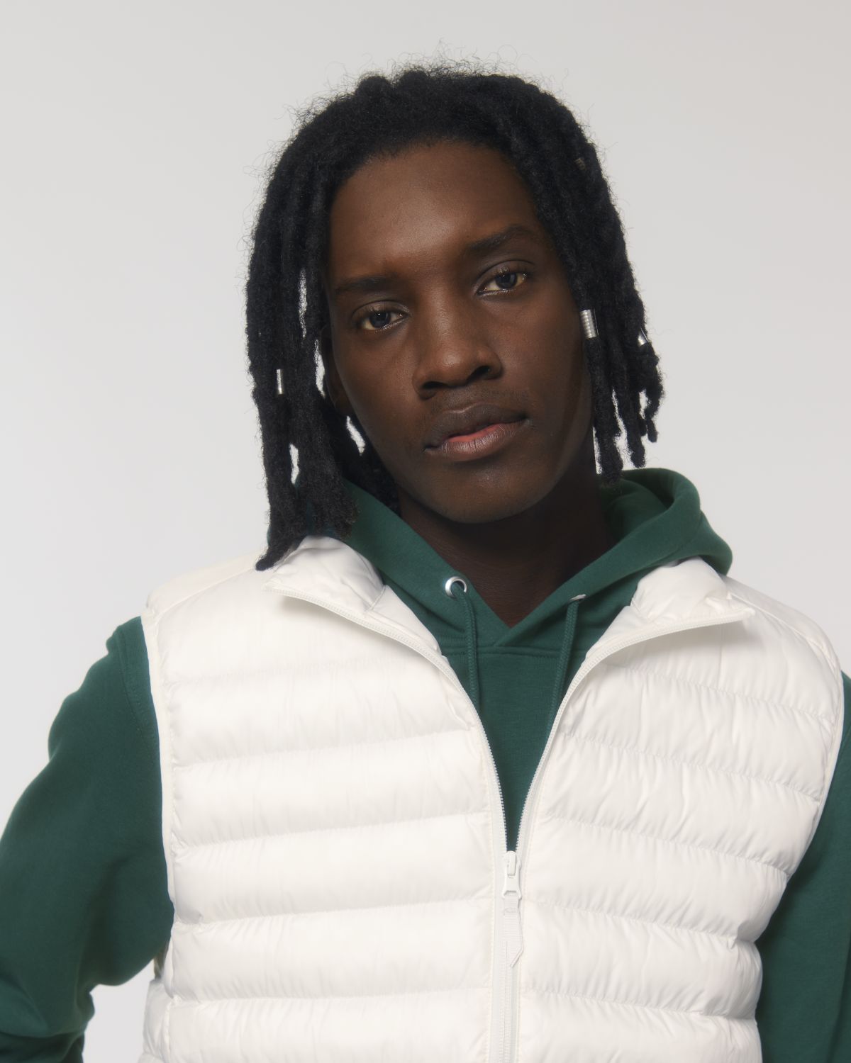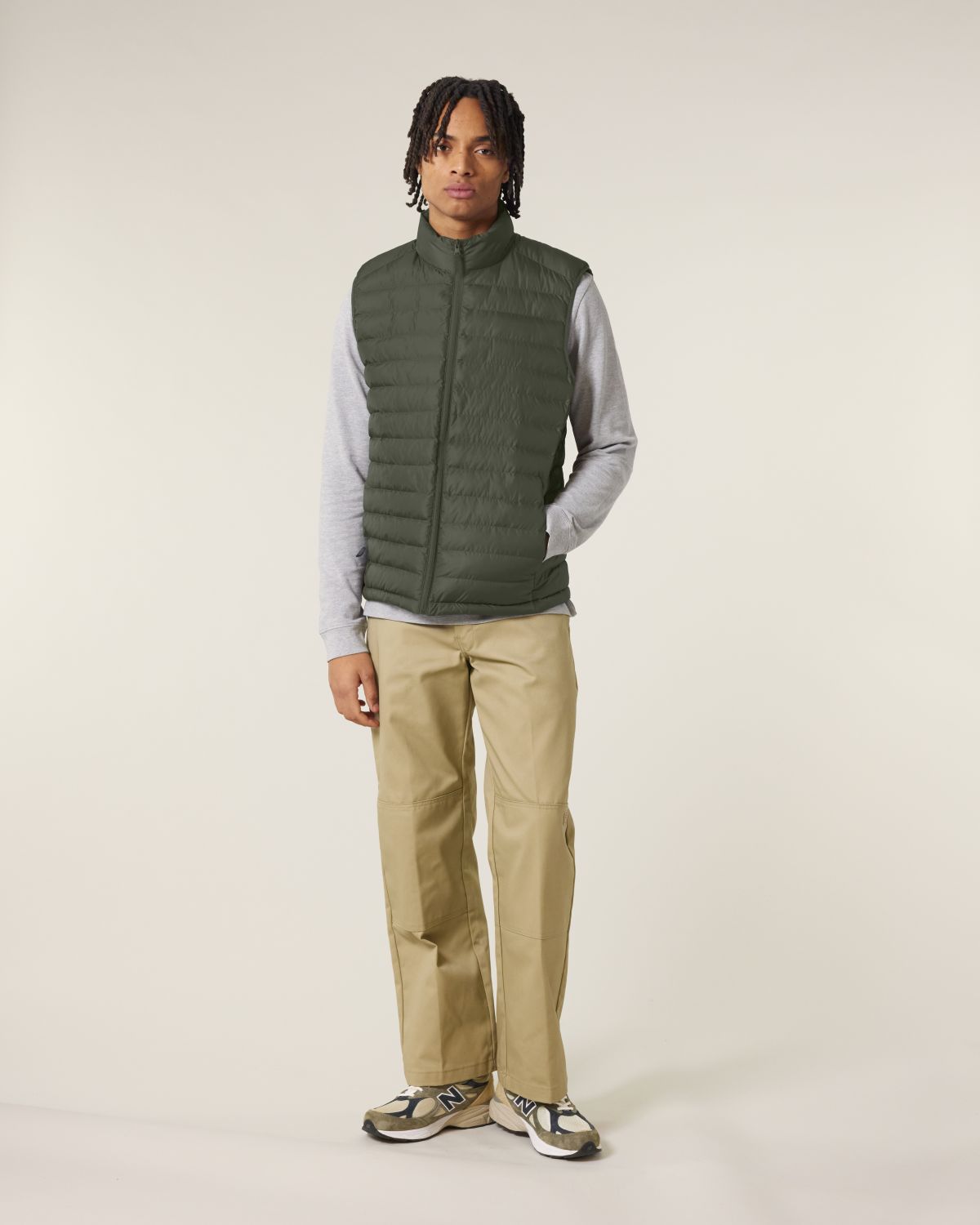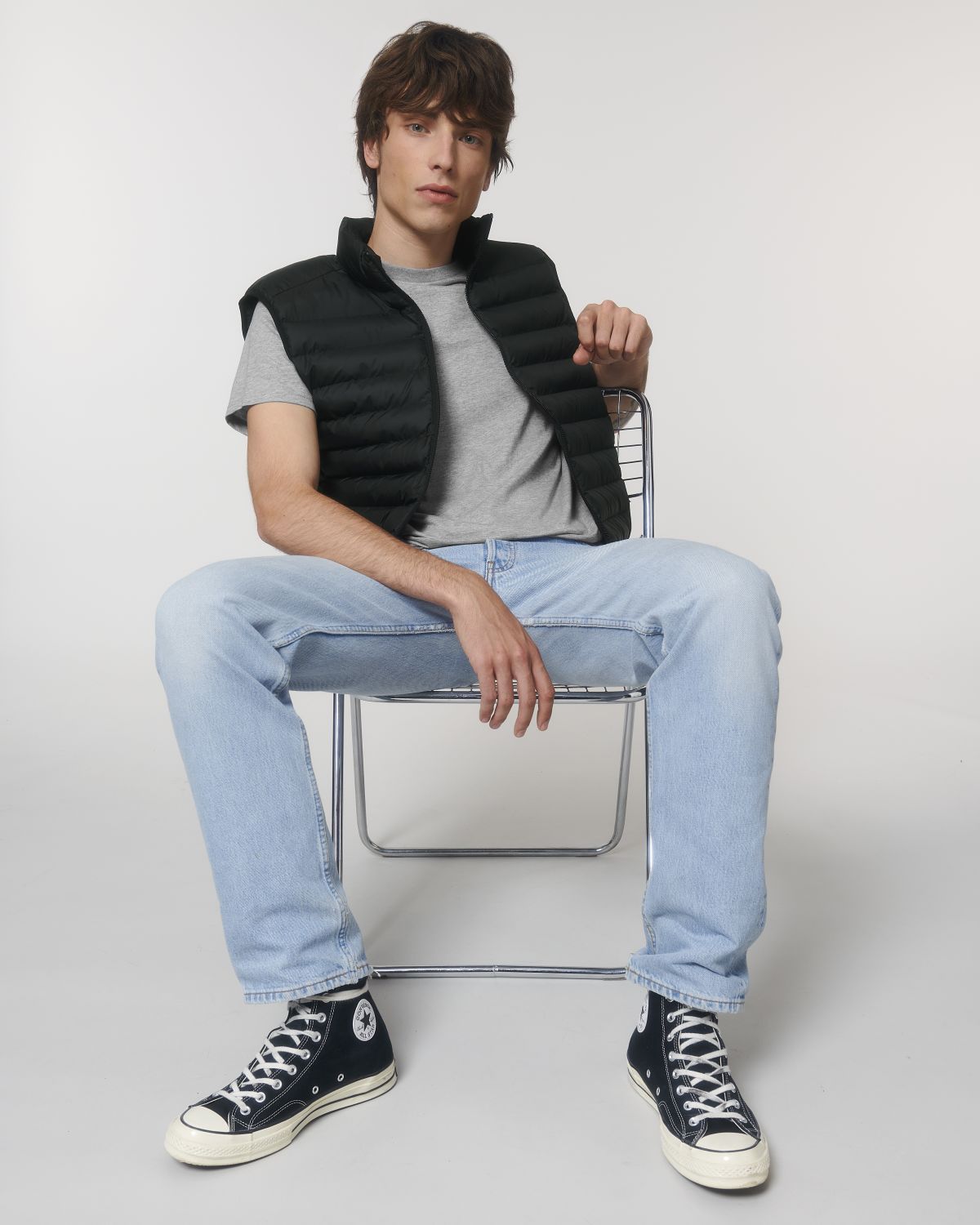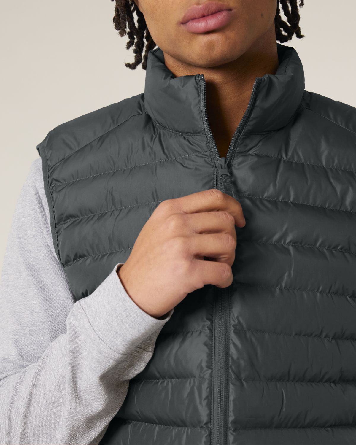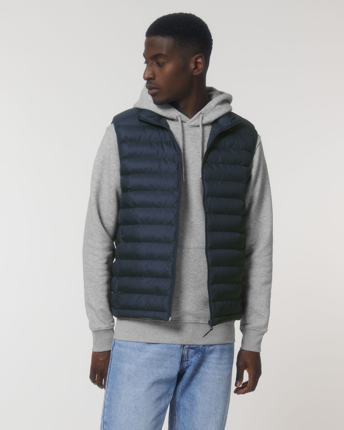 Stanley Climber kevyttoppaliivi. Hihaton, korkea kaulus, käänteinen nailonvetoketju edessä keskellä sekä vetoketjulliset teretaskut, joissa ylimääräinen grosgrain-vetohihna. Elastinen nauhareuna kädentien ympärillä. Sivupaneelit paremman istuvuuden takaamiseksi. Sisäsaumat nauhareunuksella sekä helma, jossa säädettävä muovinen stopperi ja joustava kiristysnauha.