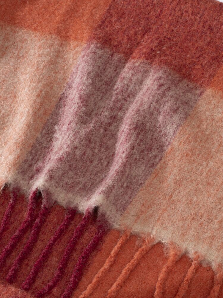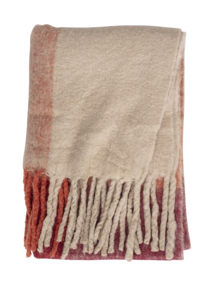 Villasekoiteviltti näyttävillä paksuilla hapsuilla. Korkealaatuisen villan ja akryylin sekoitus tekee tästä peitteestä sekä lämpimän että elegantin. Koristeelliset hapsut tuovat ilmettä ja persoonallisuutta. Ihana valinta talvi-iltojen lämmikkeeksi.