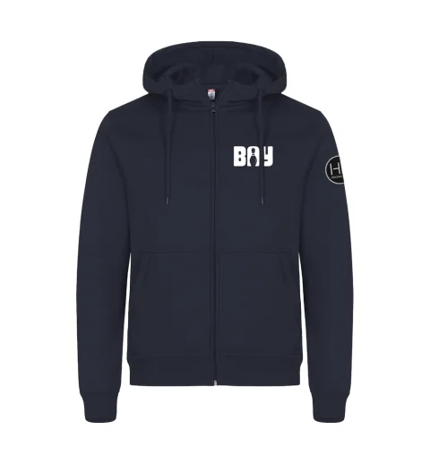 Unisex-mallinen vetoketjullinen huppari puuvillan ja kierrätetyn polyesterin sekoituksesta. SBS-vetoketju ja hupussa kiristysnyöri. Kaksi vetoketjullista taskua. Joustava resori helmassa ja hihansuissa. Pehmeä stabilisoitu kangas. Rinnassa Keilaseura Bayn logo.